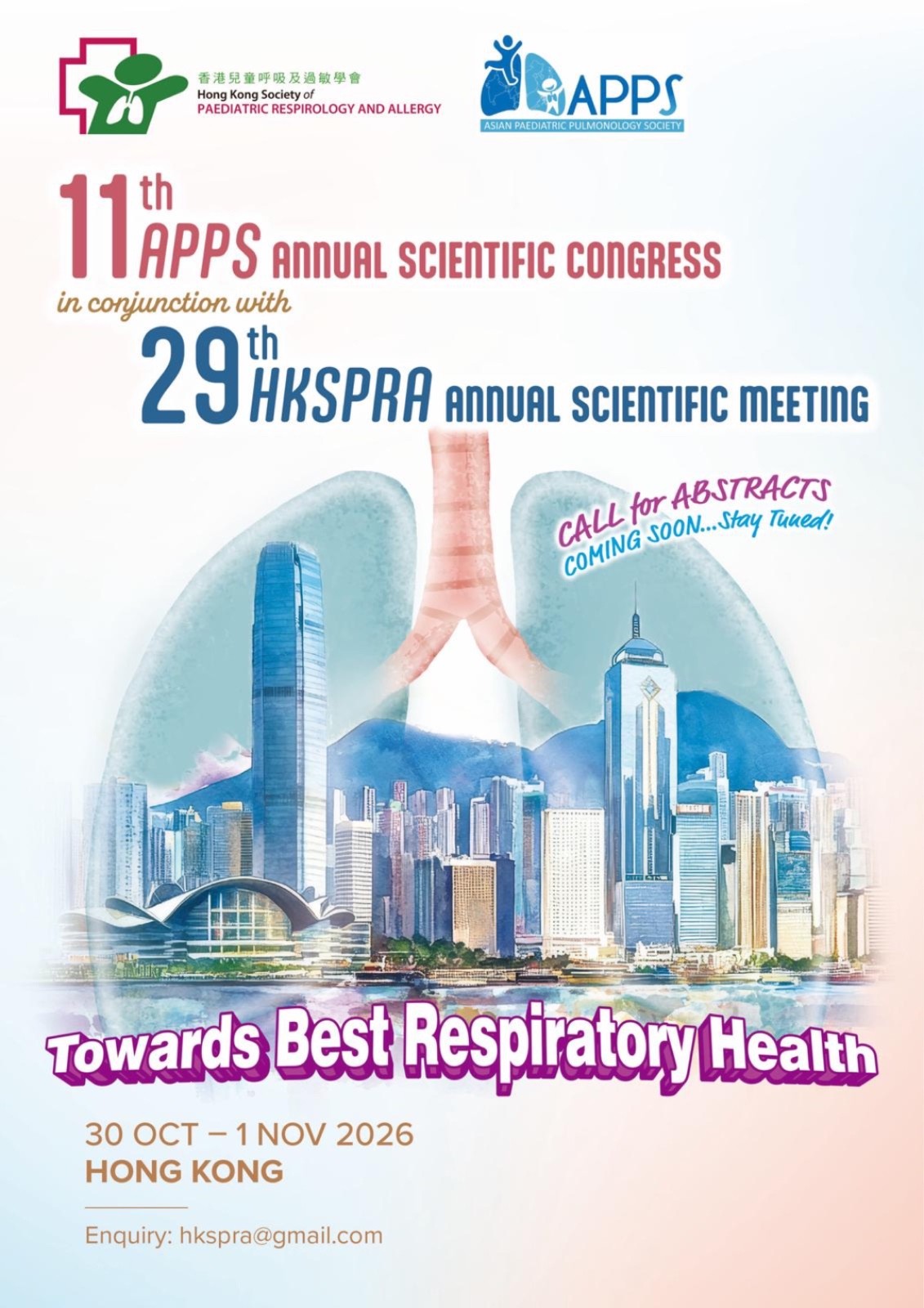 11th APPS Annual Scientific Congress ของ Asian Paediatric Pulmonology Society ซึ่งจัดขึ้นโดยความร่วมมือกับ Hong Kong Society of Pediatric Respirology and Allergy