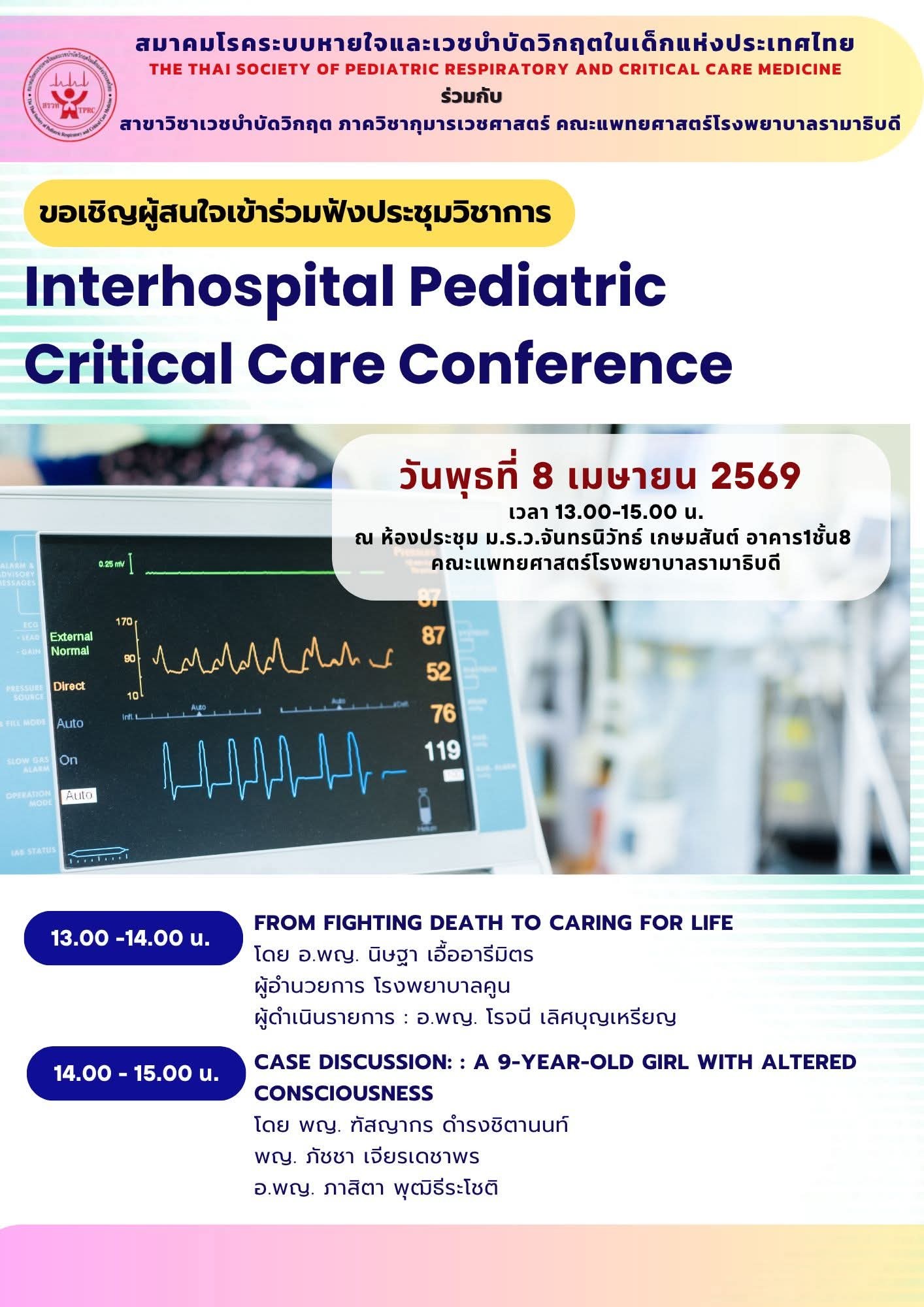 สมาคมโรคระบบหายใจและเวชบำบัดวิกฤตในเด็กแห่งประเทศไทย ร่วมกับ สาขาวิชาเวชบำบัดวิกฤต ภาควิชากุมารเวชศาสตร์ คณะแพทยศาสตร์โรงพยาบาลรามาธิบดี